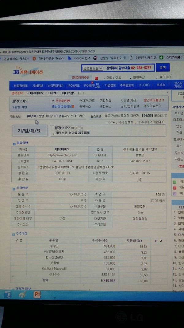장외시장사이트 매매호가게시판 5월2일 현재 오픈 !! 페이지 정보 작성자 ◆관리자◆ 작성일18-05-02 09:04 조회6,946회 댓글0건 이전글 다음글 목록 답변 본문 장외시장 사이트의 호가게시판을 통해 당사의 주식을 장외에서 매매가 가능하도록 조치하였습니다. 장외시장 매매사이트인 38커뮤니케이션의 플랫폼에서 5월 2일 현재 개시되었습니다. 감사합니다. 대덕바이오 홍보부 올림. 이전글 다음글 목록 답변