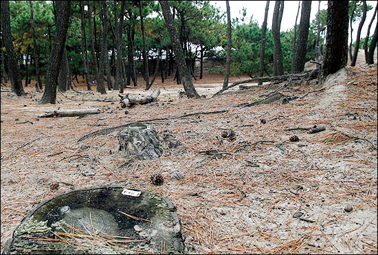 <사진2 : 일본큐슈사가현 가라스시의 '무지개소나무숲' 내부에 벌목된 나무들- 제주의소리>